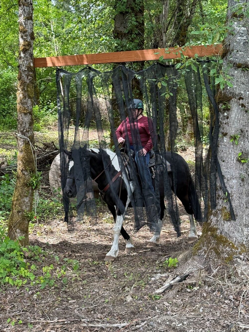 Helmets are strongly encouraged. Stay alert, be prepared to dismount if needed, and never push your horse into a situation that feels unsafe.
