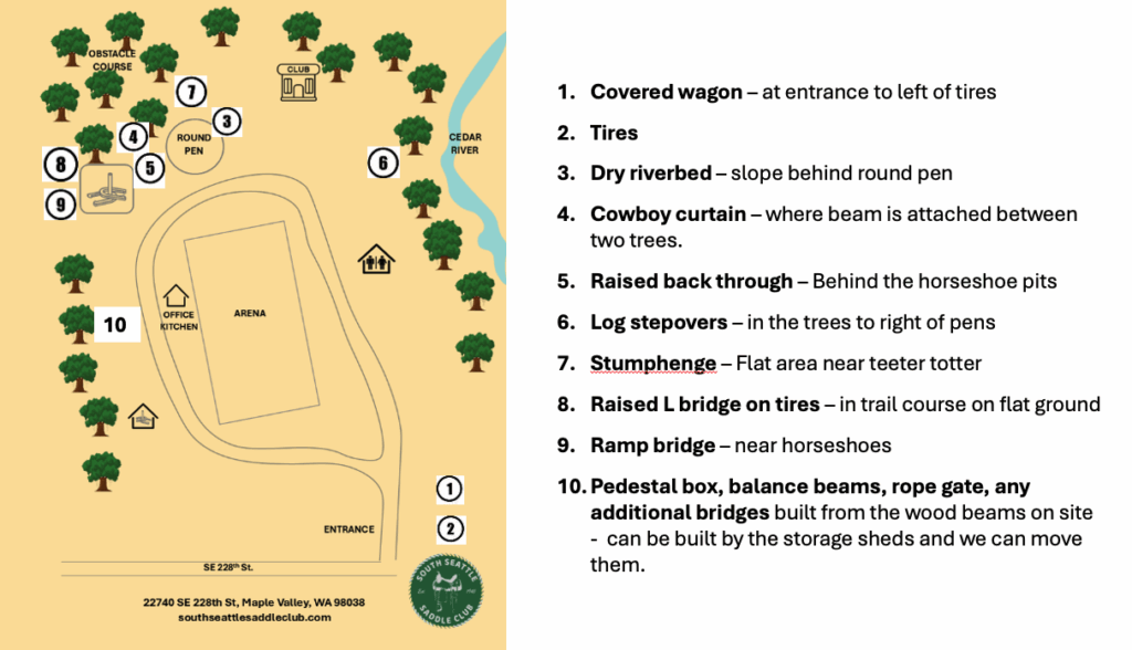 Saddle up and come play on our brand-new trail obstacle course—designed for fun, challenge, and building trust with your horse! Explore a variety of obstacles right here on club grounds.